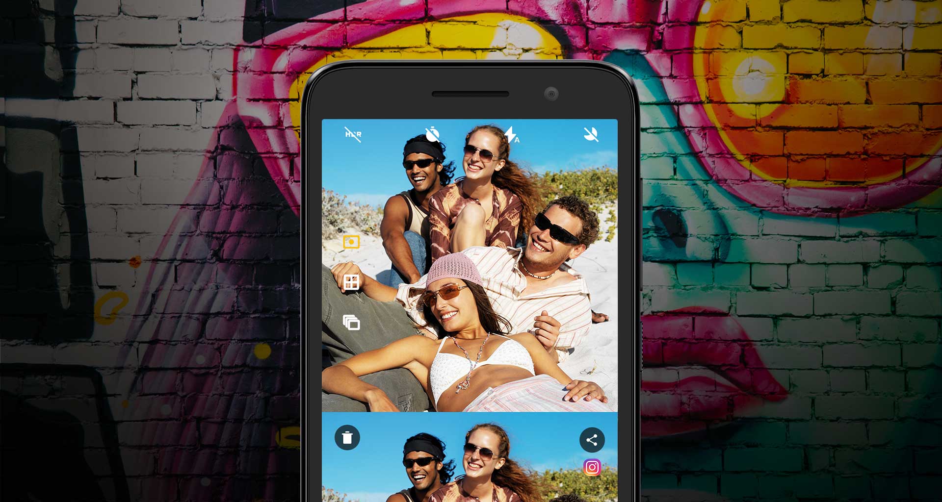 Cuenta tu historia con el Collage instantáneo de Alcatel 1. Seleccione entre cuatro diseños de collage diferentes y use el visor de ajuste automático para encuadrar y disparar cada momento. Luego comparta su experiencia con facilidad.