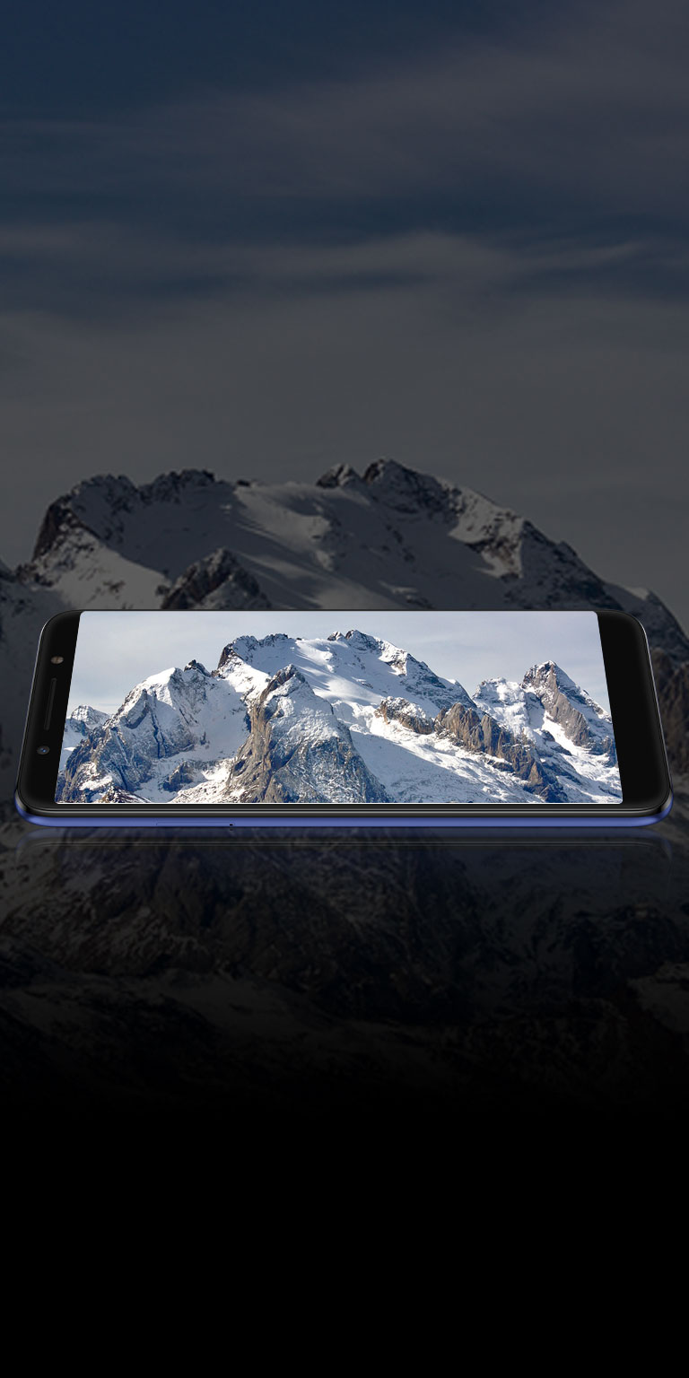 5.7”, 18:9, HD+ (1440X720 pixels) IPS Full lamination, 16 M color display, Capacitive screen 5 point touch, 2.5D glass