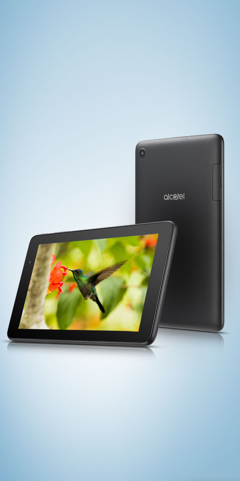 Alcatel 1T 7 tablet is 245 lightweight grams of superior performance. Among the most weightless in its class, it's ready to follow wherever you'll go.